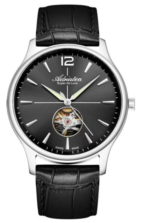 Adriatica Automatic Open Heart A8339.5256AO to elegancki męski zegarek szwajcarski, który zachwyca klasycznym stylem i nowoczesnym akcentem w postaci tarczy typu open heart, odsłaniającej pracę mechanizmu automatycznego. Koperta ze stali szlachetnej w odcieniu srebra została zestawiona z mineralnym szkiełkiem, odpornym na codzienne użytkowanie. Model wyróżnia się czytelną, jasną tarczą oraz starannym wykończeniem, dzięki czemu świetnie sprawdzi się zarówno na co dzień, jak i do bardziej formalnych stylizacji.