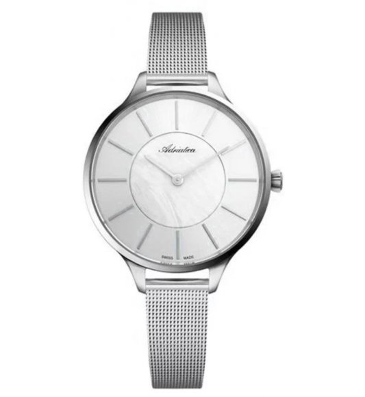 Adriatica Classic A3633.511FQ – damski zegarek kwarcowy, należący do cenionej, szwajcarskiej marki – Adriatica. Ten klasyczny czasomierz posiada okrągłą kopertę i siatkową bransoletę, wykonane z wysokiej jakości stali szlachetnej, w kolorze srebrnym. Na jasnej tarczy eleganckiego zegarka widnieją smukłe wskazówki i indeksy godzinowe w postaci kresek oraz widowiskowa masa perłowa. Adriatica Classic A3633.511FQ posiada mineralne, odporne na uderzenia szkiełko i podstawowy poziom wodoszczelności – 30m, która chroni model przed zachlapaniem. Zachowany w minimalistycznym stylu zegarek dopasuje się do każdej zarówno codziennej, jak i odświętnej damskiej stylizacji. W połączeniu ze spersonalizowanym grawerunkiem czasomierz będzie trafionym prezentem z okazji np. Komunii, Dnia Kobiet, urodzin, czy m.in. Rocznicy Ślubu.