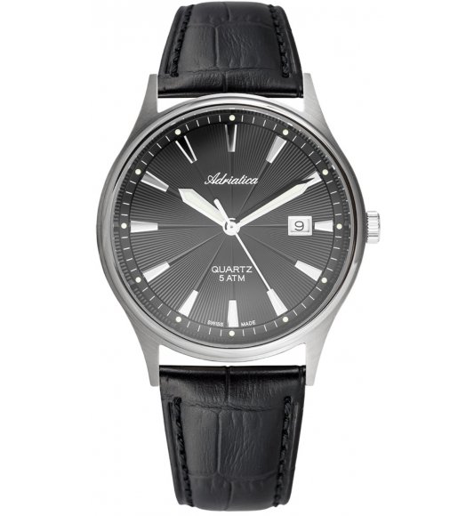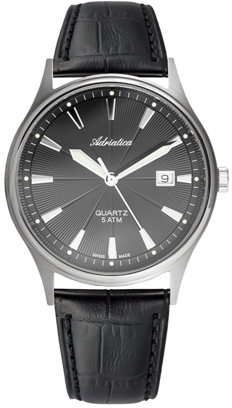 - Oznaczenie Swiss Made, firma Adriatica jest zrzeszona w Federacji Szwajcarskiego Przemysłu Zegarmistrzowskiego