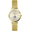 Atlantic Elegance Moonphase 29040.45.31MB to szykowny zegarek kwarcowy, który łączy klasyczną estetykę z subtelną komplikacją faz księżyca. Koperta w złotym odcieniu nadaje mu biżuteryjnego charakteru, a jasna tarcza z eleganckimi indeksami i oknem faz księżyca podkreśla jego wyjątkowość. Szafirowe szkło zapewnia wysoką odporność na zarysowania, a bransoleta ze stali szlachetnej harmonijnie dopełnia całość. Model ten doskonale sprawdzi się jako elegancki dodatek zarówno na co dzień, jak i przy wyjątkowych okazjach.