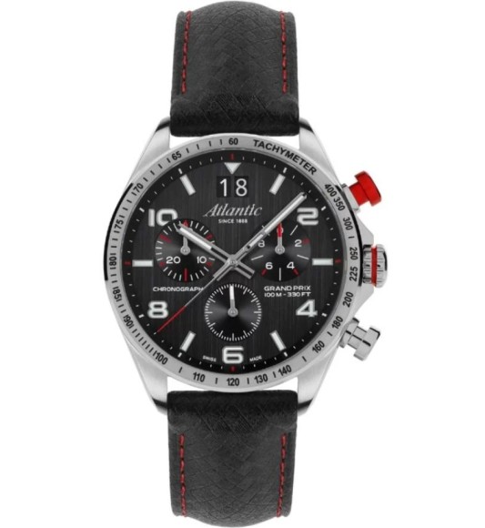 Atlantic Grand Prix Chronograph 55463.41.65 to zegarek męski o sportowo‑eleganckim charakterze. Posiada stalową kopertę w srebrnym kolorze oraz szafirowe szkło, które gwarantuje wysoką odporność na zarysowania. Napędzany jest precyzyjnym mechanizmem kwarcowym, a jego funkcje obejmują chronograf i tachymetr, podkreślające dynamiczny styl modelu. Wodoszczelność na poziomie 100 m sprawia, że zegarek doskonale sprawdza się zarówno na co dzień, jak i podczas aktywności w wodzie. Całość uzupełnia klasyczny pasek, nadający mu ponadczasowej elegancji.