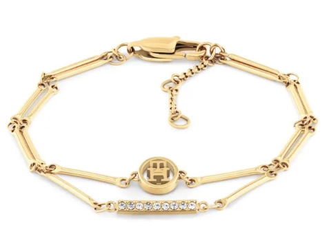 Amerykańska marka Tommy Hilfiger, tworzy niepowtarzalne modele stalowych bransoletek, które trafiają w gusta ogromnej rzeszy kobiet na całym świecie. Wśród oferty brandu, znajdują się bransoletki wykonane z najwyższej jakości stali szlachetnej 316L, w kolorach srebra oraz żółtego i różowego złota. Prestiżowa marka Tommy Hilfiger, proponuje swoim zwolenniczkom modele łańcuszkowych bransoletek, z dodatkami różnego rodzaju zawieszek, często ozdobione mieniącymi kryształkami i kamieniami. Oprócz bransoletek w typie celebrytka, Tommy Hilfiger ma w ofercie modele kobiecych bransoletek typu bangle, które są ponadczasowe i klasyczne. Każdy model został opatrzony logiem marki - prostokątem, który dzieli się na dwie połowy białą i czerwoną, a nad nim i pod nim, znajdują się granatowe paski. Logo marki, powstałe w 1985 roku, nawiązuje kolorystyką do barw flagi USA. Damskie bransoletki marki Tommy Hilfiger, gustownie prezentują się na kobiecych nadgarstkach, w zestawieniu z zarówno eleganckimi stylizacjami, jak i codziennymi, w stylu grunge.
