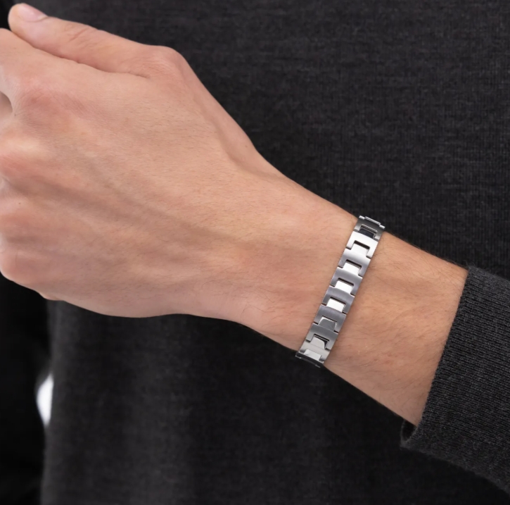 Znany na całym świecie, niemiecki brand – Hugo Boss, oferuje swoim miłośnikom szeroki wybór stalowych bransolet męskich, na każdą okazję. Marka posiada w ofercie modele, wykonane z wysokiej jakości stali szlachetnej, hipoalergicznej i wytrzymałej. Bransoletki Hugo Boss są pozłacane żółtym bądź różowym złotem, barwione na czarno lub wykonane w srebrnym odcieniu. Każdy modny mężczyzna znajdzie odpowiedni dla siebie model. Męska biżuteria Hugo Boss cieszy się niesłabnącym zainteresowaniem, za sprawą znakomitej jakości wykonania i eleganckiej, ponadczasowej stylistyce.