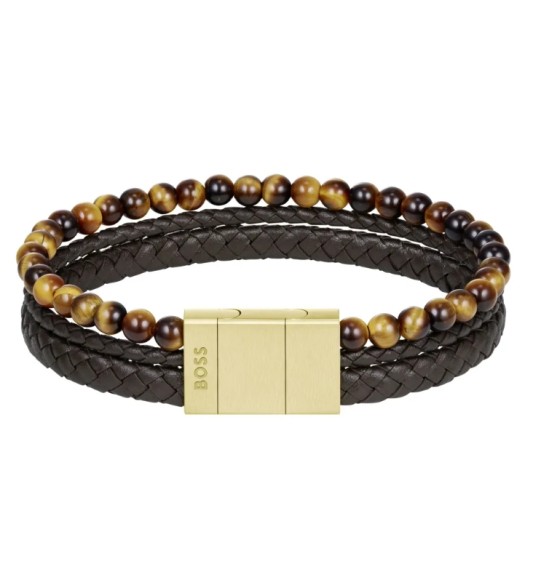 Niemiecka marka Hugo Boss posiada szeroką ofertę biżuterii męskiej, z wysokogatunkowej stali, tworzonej z pasją i dbałością o każdy szczegół. Modowy brand zajmuje się projektowaniem oryginalnych, męskich bransoletek, z naturalnej skóry i kamieni. Stylowe modele zachowane zostały w eleganckiej, stonowanej kolorystyce, głównie czerni i brązu, przez co pasują do każdej stylizacji. Świetnie będą się prezentować w zestawieniu z wytwornym zegarkiem i garniturem, czy koszulą, ale też i dodadzą charakteru casualowemu lookowi. Męskie bransoletki z dodatkiem stali i skóry, posiadają znaki towarowe marki Hugo Boss, świadczące o oryginalności. Skórzane bransolety męskie znakomicie nadają się do wręczenia na prezent dla ceniącego ekskluzywne, modne dodatki mężczyzny.