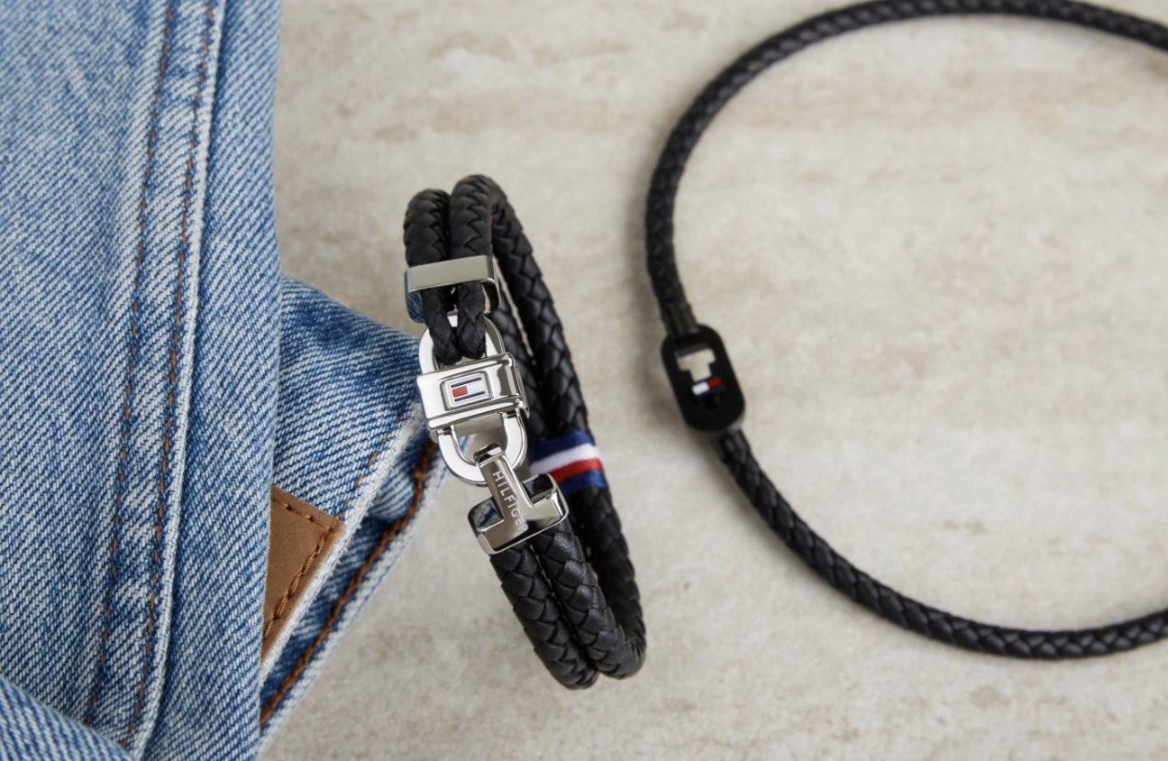 Wśród oferty biżuterii amerykańskiego brandu Tommy Hilfiger, dużą grupę stanowią bransoletki stworzone dla nowoczesnych mężczyzn. Marka oferuje swoim miłośnikom bogaty wybór stalowych i skórzanych bransoletek, w kolorach złota, srebra, czerni, brązu, granatu, czerwieni itp. Każdy, preferujący stylowe, oryginalne dodatki mężczyzna, znajdzie wśród oferty brandu, pasujący do siebie model. Modne bransoletki męskie Tommy Hilfiger, można dopasować do każdej okazji. Modele w całości wykonane ze stali złoconej, srebrnej lub pokrytej czernią, znakomicie będą prezentować się w towarzystwie eleganckiej koszuli, czy garnituru. Z kolei bransoletki skórzane, występujące w różnych odcieniach, dodadzą charakteru, każdej casualowej stylizacji.