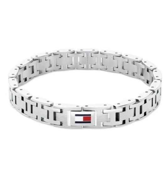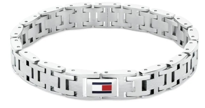 Amerykańska marka Tommy Hilfiger, tworzy niepowtarzalne modele stalowych bransoletek, które trafiają w gusta ogromnej rzeszy kobiet na całym świecie. Wśród oferty brandu, znajdują się bransoletki wykonane z najwyższej jakości stali szlachetnej 316L, w kolorach srebra oraz żółtego i różowego złota. Prestiżowa marka Tommy Hilfiger, proponuje swoim zwolenniczkom modele łańcuszkowych bransoletek, z dodatkami różnego rodzaju zawieszek, często ozdobione mieniącymi kryształkami i kamieniami. Oprócz bransoletek w typie celebrytka, Tommy Hilfiger ma w ofercie modele kobiecych bransoletek typu bangle, które są ponadczasowe i klasyczne. Każdy model został opatrzony logiem marki - prostokątem, który dzieli się na dwie połowy białą i czerwoną, a nad nim i pod nim, znajdują się granatowe paski. Logo marki, powstałe w 1985 roku, nawiązuje kolorystyką do barw flagi USA. Damskie bransoletki marki Tommy Hilfiger, gustownie prezentują się na kobiecych nadgarstkach, w zestawieniu z zarówno eleganckimi stylizacjami, jak i codziennymi, w stylu grunge.