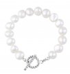 Bransoletka z pereł MANOKI BA993 – subtelna bransoletka z pereł hodowlanych i stali, należąca do krakowskiej, znanej marki – Manoki. Elegancki model przyozdobiono stalowym, przekładanym zapięciem, które nie uczula. Klasyczna bransoletka z pereł, w nowoczesnej odsłonie z pewnością przypadnie do gustu niejednej, lubującej się w ponadczasowej biżuterii kobiecie. Modna bransoletka Manoki doskonale prezentuje się w zestawieniu z casualową, jak i odświętną stylizacją. Długość modelu wynosi: 17cm. Markową bizuterię Manoki pakujemy w oryginalne sakiewki i torebki.
