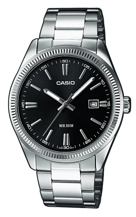 CASIO MTP‑1302PD‑1A1VEF to klasyczny męski zegarek o eleganckim, ponadczasowym charakterze. Jego czarna tarcza z wyraźnymi, srebrnymi indeksami i datownikiem na godzinie trzeciej świetnie kontrastuje ze stalową bransoletą, tworząc stylowy i uniwersalny zestaw. Charakterystyczna karbowana luneta dodaje mu nieco bardziej wyrazistego, „biżuteryjnego” wyglądu.