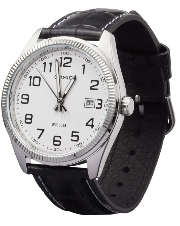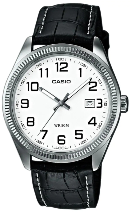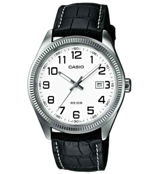 CASIO MTP‑1302PL‑7BVEF to klasyczny męski zegarek o eleganckim, ponadczasowym charakterze. Jego jasna, srebrzysta tarcza z wyraźnymi indeksami i datownikiem na godzinie trzeciej zapewnia świetną czytelność, a karbowana luneta dodaje mu charakterystycznego, biżuteryjnego akcentu.