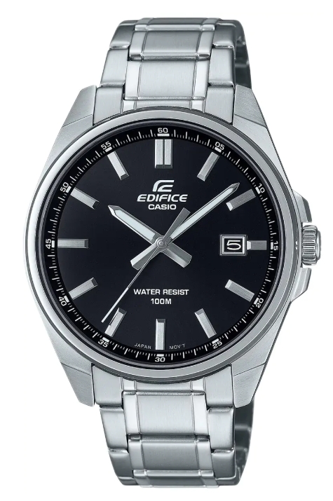Casio Edifice EFV‑150D‑1AVUEF to elegancki zegarek męski o sportowym charakterze, łączący stalową kopertę i bransoletę z wyrazistą, ciemną tarczą. Model wyposażono w precyzyjny mechanizm kwarcowy, datownik oraz czytelne indeksy, dzięki czemu świetnie sprawdza się w codziennym użytkowaniu. Mineralne szkło i wodoszczelność 100 m zapewniają trwałość i odporność na warunki zewnętrzne. To propozycja dla mężczyzn ceniących klasyczny styl Edifice, solidne wykonanie i funkcjonalność na co dzień.