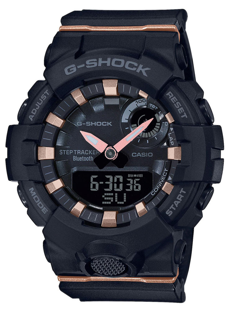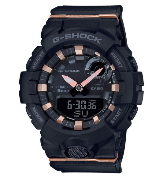 Casio G-SHOCK GMA-B800-1AER – to japoński zegarek męski, należący do uznanego na świecie producenta – Casio. Ten zachowany w sportowym stylu czasomierz posiada niezwykle precyzyjny kwarcowy mechanizm, z systemem antywstrząsowym. Oryginalny zegarek G-Shock został wyposażony w wiele specjalistycznych funkcji, do których należą m.in. stoper, timer, alarm, budzik, druga strefa czasowa i podświetlenie. Kwarcowy czasomierz męski posiada możliwość zapisywania treningów i śledzenia postępów poprzez łączenie się dzięki portowi Bluetooth z aplikacją w telefonie. Sportowy model zegarka posiada krokomierz oraz mineralne, odporne na uderzenia szkiełko oraz wysoki poziom wodoszczelności – 100m. Casio G-SHOCK GMA-B800-1AER znakomicie podkreśli każdą męską stylizację. To niezawodny model, który można z powodzeniem zabrać ze sobą na wyprawę w góry, do lasu i wszędzie tam, gdzie panują niekorzystne warunki otoczenia.