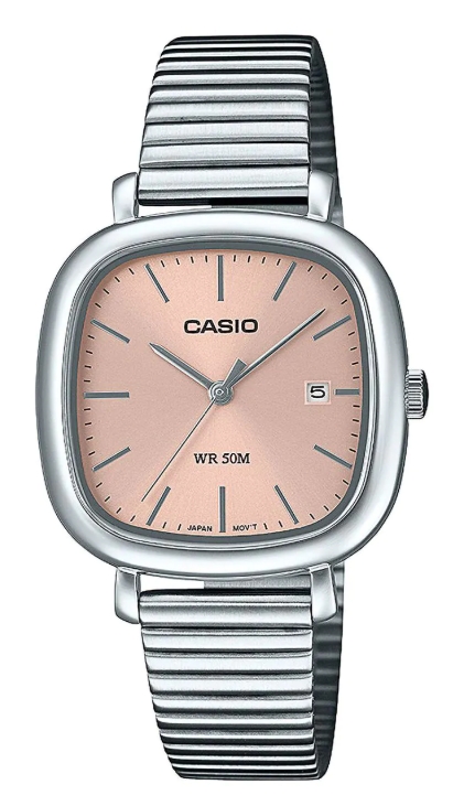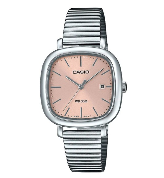 CASIO LTP‑B166D‑4AVEF to elegancki damski zegarek, który wyróżnia się subtelną, różową tarczą zestawioną ze srebrną stalową bransoletą. Jego minimalistyczny design sprawia, że świetnie pasuje zarówno do codziennych stylizacji, jak i bardziej formalnych zestawów. Smukła koperta dodaje mu lekkości, a proste indeksy zapewniają czytelność i ponadczasowy charakter.