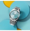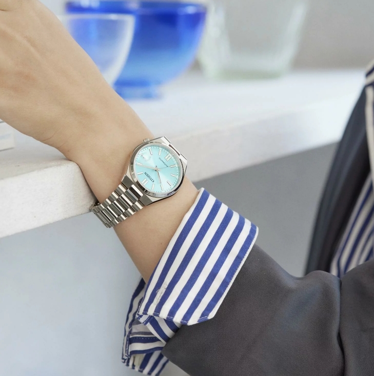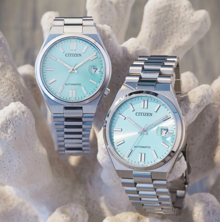 Citizen Tsuyosa NJ0200‑50L to mechaniczny zegarek o wyrazistym, nowoczesnym charakterze, utrzymany w stylistyce inspirowanej latami 70. Model wyróżnia się głęboką, niebieską tarczą z efektem sunburst, która pięknie gra światłem i nadaje całości dynamicznego wyglądu. Zintegrowana stalowa bransoleta oraz opływowa koperta tworzą spójną, elegancko‑sportową formę. Wewnątrz pracuje automatyczny mechanizm Citizen z około 40‑godzinną rezerwą chodu, widoczny przez przeszklony dekiel. Szkło szafirowe zapewnia wysoką odporność na zarysowania, a 37‑milimetrowa koperta gwarantuje komfort noszenia na co dzień. To stylowa propozycja dla osób ceniących jakość, design i ponadczasową estetykę.