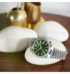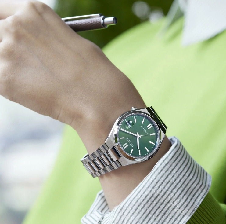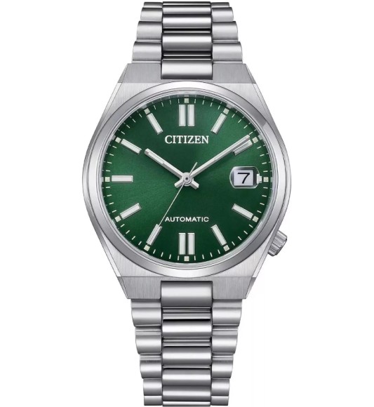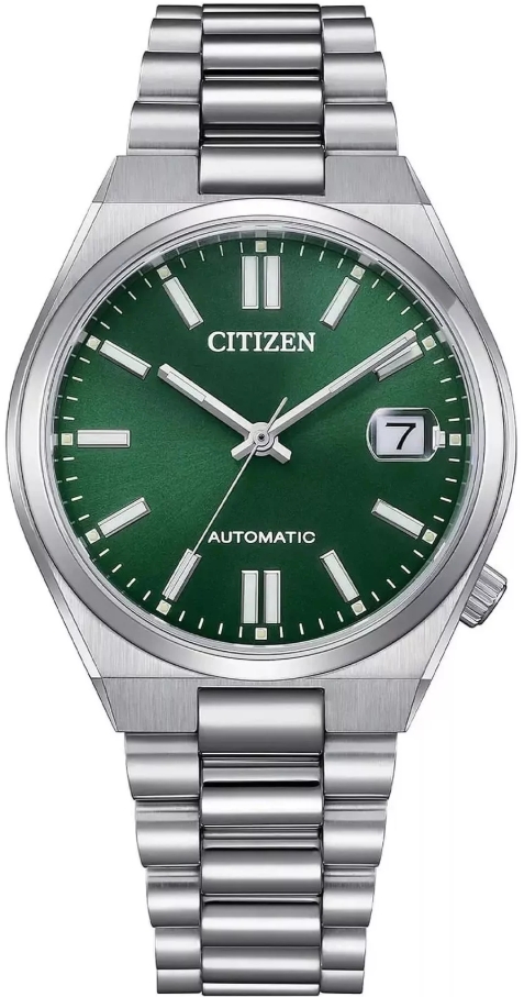 Citizen Tsuyosa NJ0200‑50X to mechaniczny zegarek o wyrazistym, sportowo‑eleganckim charakterze, inspirowany stylistyką lat 70. Model wyróżnia się zieloną, słonecznie szlifowaną tarczą oraz zintegrowaną stalową bransoletą, które nadają mu nowoczesny i dynamiczny wygląd. Wewnątrz pracuje automatyczny mechanizm Citizen z 40‑godzinną rezerwą chodu, widoczny przez przeszklony dekiel. Koperta o średnicy 40 mm zapewnia komfort noszenia, a szkło szafirowe gwarantuje wysoką odporność na zarysowania. To propozycja dla osób ceniących styl, solidność i świetny stosunek jakości do ceny.