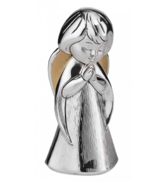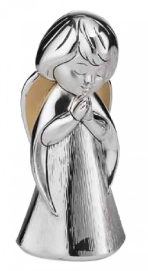 Figurka modlącego się Aniołka, wykonana z zabezpieczonego lakierem srebra, nadająca się do postawienia na półce dziecięcego pokoiku. Wyrób nadaje się do wręczenia na prezent z okazji Chrztu, Komunii, czy np. na Roczek. Srebrna figurka posiada oryginalne pudełko włoskiego producenta oraz możliwość dołączenia blaszki z grawerem wybranym przez klienta, którą można umieścić w pudełku.