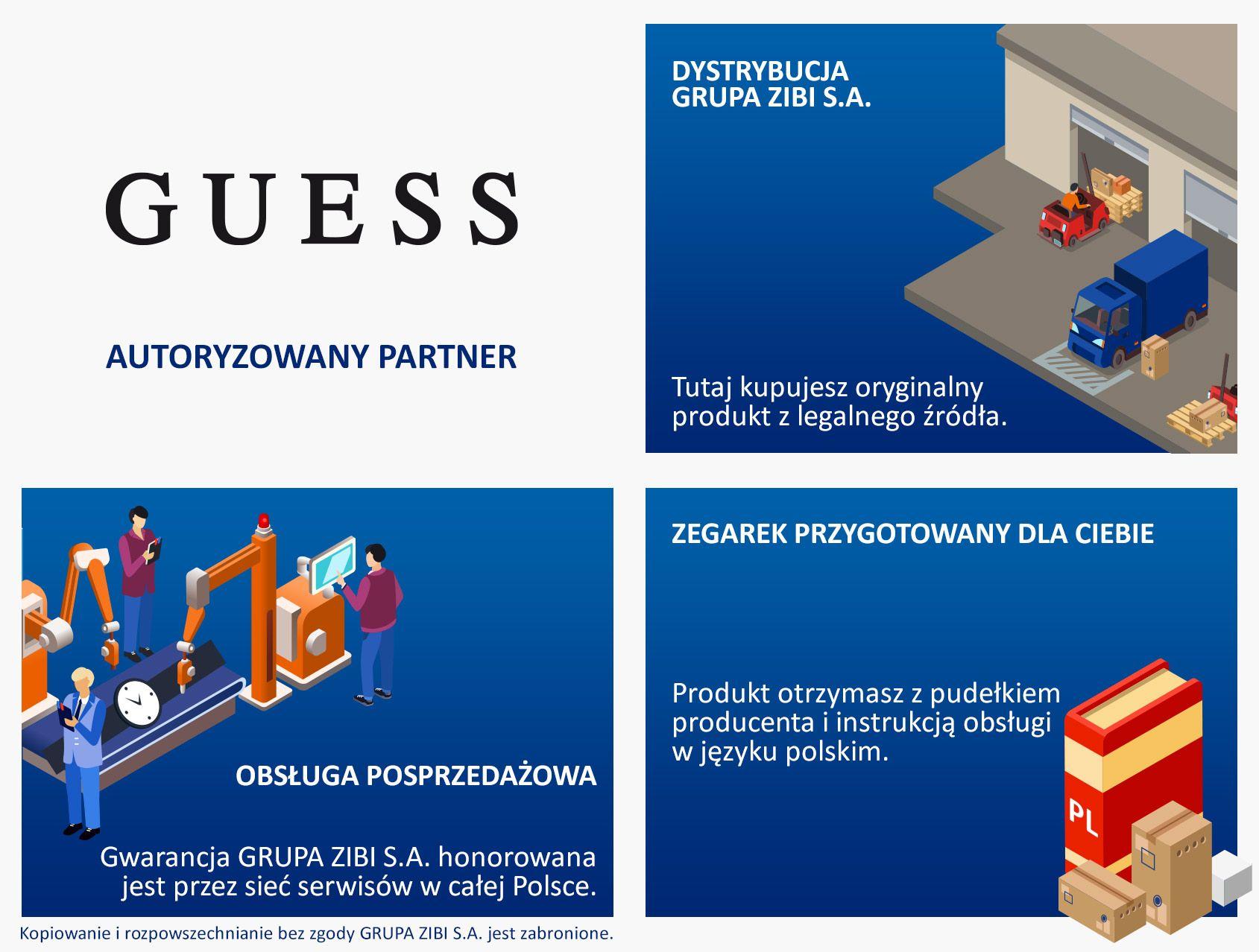 GUESS Frontier W1132G1 – to męski zegarek kwarcowy, należący do modowej, amerykańskiej marki – Guess. Ten niezwykle elegancki czasomierz posiada okrągłą kopertę ze stali szlachetnej, w kolorze złota, którą bogato ozdobiono kryształkami. Na czarno- złotej tarczy umieszczono wyraźne wskazówki i indeksy godzinowe w postaci cyfr arabskich oraz multidatownik i wskazanie czasu dobowego na subtarczkach. Koperta modnego zegarka męskiego została osadzona na czarnym pasku, z tworzywa sztucznego. GUESS Frontier W1132G1 posiada mineralne, odporne na uderzenia szkiełko i wysoki poziom wodoszczelności – 100m, która umożliwia pływanie i nurkowanie z rurką. GUESS Frontier W1132G1 to zegarek dla odważnych, ceniących awangardowy styl mężczyzn.