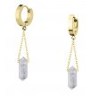 Kolczyki MANOKI z kryształem górskim KA200A – wiszące kolczyki, oferowane przez krakowski brand – Manoki. Bazę modeli stanowią naturalne kryształy górskie, które dodają biżuterii oryginalnego charakteru. Minimalistyczne kolczyki mają wygodne zapięcie (tzw.,,kajdankowe”) i nowoczesny, przykuwający spojrzenia design. Modele wykonano z wysokogatunkowej, złoconej metodą PVD, stali 316L, która pięknie błyszczy i zachowuje estetyczny wygląd biżuterii przez długi czas. Długość kolczyka wynosi: 55mm. Markowa biżuteria Manoki jest pakowana w oryginalną sakiewkę i torebkę Manoki.