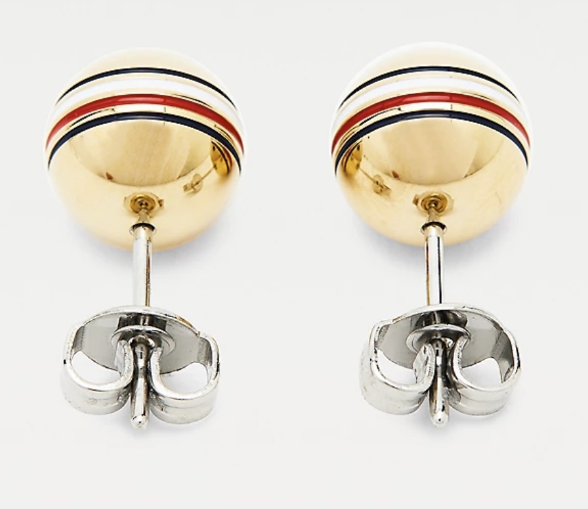 Kolczyki TOMMY HILFIGER 2780517 – pozłacane kolczyki kulki, wykonane z wysokogatunkowej stali szlachetnej. Modele mają bardzo wygodne i praktyczne zapięcie, na sztyft, który stabilnie trzyma się ucha. Kobiece kolczyki ozdabia logo marki Tommy Hilfiger, co dodaje im oryginalnego charakteru. Modna biżuteria posiada firmowe pudełko i ozdobną, papierową torebkę Tommy Hilfiger.