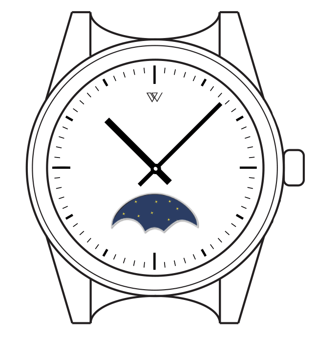 Jak współcześnie odbywa się realizacja wskazania księżycowych faz na cyferblacie? Przyjmując za pierwszy dzień tzw. "nów Księżyca" - Przez kolejne 8 dni księżyc jest niewidoczny i na tarczy zegarka pokazuje się zwykle granatowe pole. W 8. dniu pojawia się rogalik zakrzywiony podobny do kształtu litery D. Rośnie on aż w 15 dniu cyklu na tarczy pojawia się pełny księżyc. Dalej, księżyc maleje i na tarczy pokazuje się coraz mniejszy rogalik zmierzający do litery C. Po przejściu całego 29 dniowego cyklu zaczyna się kolejny.