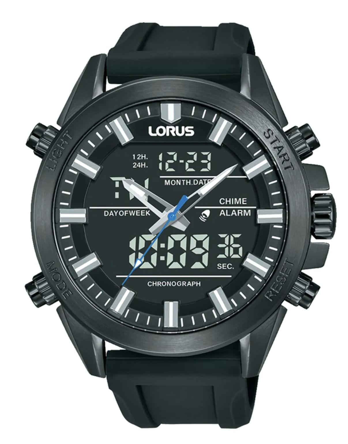 Zegarek Lorus Chronograph RW671AX9 to męski model o dynamicznym, sportowym charakterze, który wyróżnia się nowoczesnym designem. Posiada czarną kopertę wykonaną ze stali szlachetnej oraz pasek z tworzywa sztucznego, co zapewnia lekkość i wygodę noszenia. Wyposażony jest w precyzyjny mechanizm kwarcowy oraz funkcję chronografu, umożliwiającą dokładne pomiary czasu. Ciemna tarcza chroniona jest przez mineralne szkło, a wodoszczelność na poziomie 100 metrów pozwala na bezpieczne użytkowanie podczas pływania.