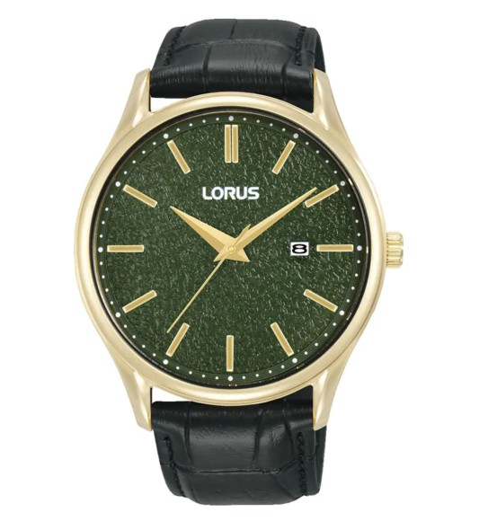 Lorus RH938QX9 to stylowy i elegancki męski zegarek z ciemnozieloną tarczą i czarnym skórzanym paskiem. Jego klasyczny design, czytelność i funkcjonalny datownik czynią go praktycznym i modnym wyborem na co dzień.