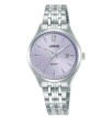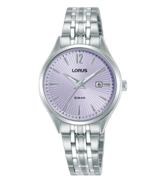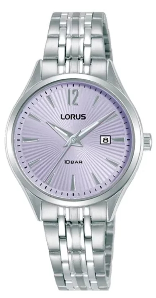 Lorus RJ299BX9 to elegancki damski zegarek kwarcowy o klasycznym charakterze. Posiada srebrną kopertę ze stali szlachetnej o średnicy 30 mm oraz fioletową tarczę, która dodaje mu wyrazistości i kobiecego stylu. Mechanizm Seiko PC22A zapewnia precyzyjne działanie, a szkło mineralne chroni tarczę przed uszkodzeniami. Zegarek wyposażono w datownik oraz powłokę luminescencyjną na wskazówkach, co ułatwia odczyt godziny w ciemności. Wodoszczelność na poziomie 100 m (10 ATM) pozwala na pływanie z zegarkiem.