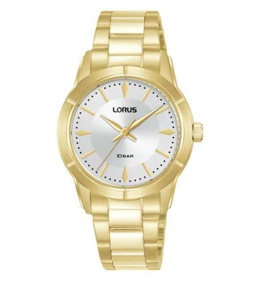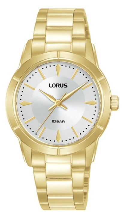 Lorus Lady RG236YX9 to elegancki damski zegarek o klasycznym, subtelnym charakterze. Posiada stalową kopertę w kolorze złotym oraz bransoletę, które tworzą harmonijną, ponadczasową kompozycję. Jasna tarcza z delikatnymi indeksami podkreśla jego minimalistyczny styl, a mechanizm kwarcowy Seiko Epson zapewnia niezawodne działanie. Model oferuje wodoszczelność 100 m, dzięki czemu jest wyjątkowo odporny na codzienne zachlapania.