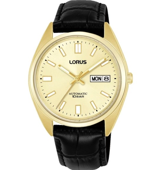 Lorus RL436CX9 to elegancki męski zegarek automatyczny z kolekcji Classic, łączący klasyczny styl z nowoczesną funkcjonalnością. Posiada stalową kopertę o średnicy 39 mm i czarny skórzany pasek z tradycyjnym zapięciem. Jasna, szampańska tarcza typu sunray wyposażona jest w wskaźnik dnia i daty, a także luminujące wskazówki i indeksy dla lepszej czytelności. Mechanizm Seiko Y676 zapewnia płynne działanie bez potrzeby baterii, a wodoszczelność 10 bar (100 m) pozwala na bezpieczne użytkowanie podczas pływania. Całość chroni płaskie szkło mineralne, a przez przeszklony dekiel można podziwiać pracę mechanizmu.
