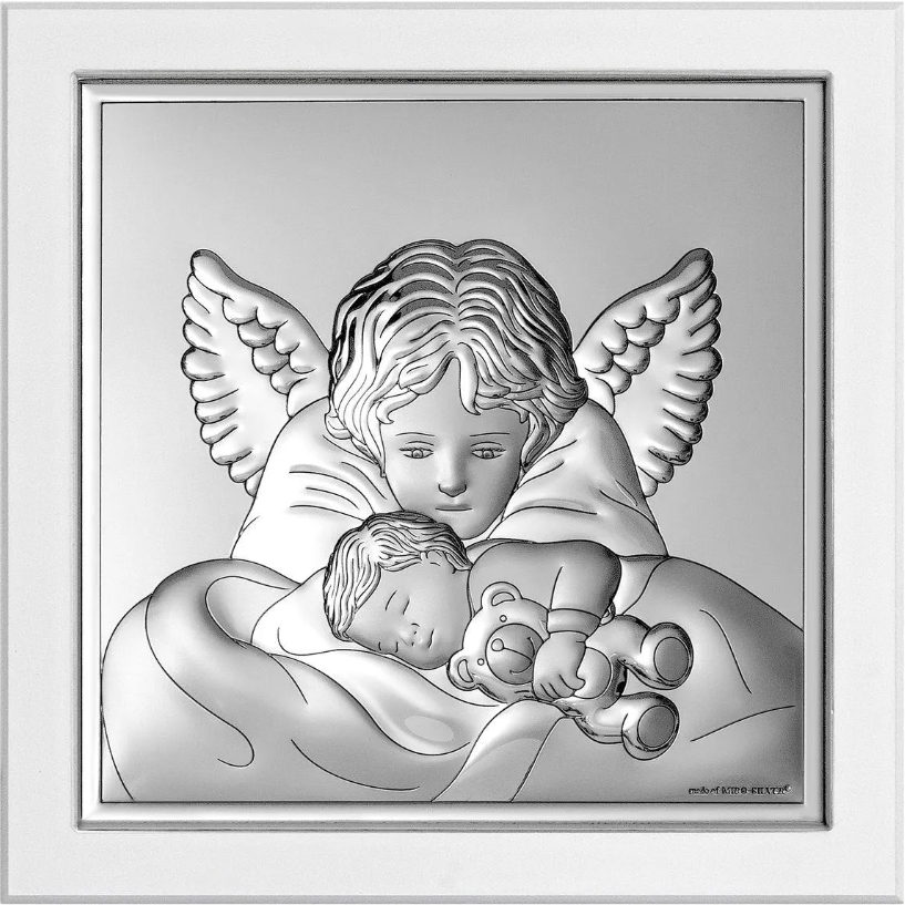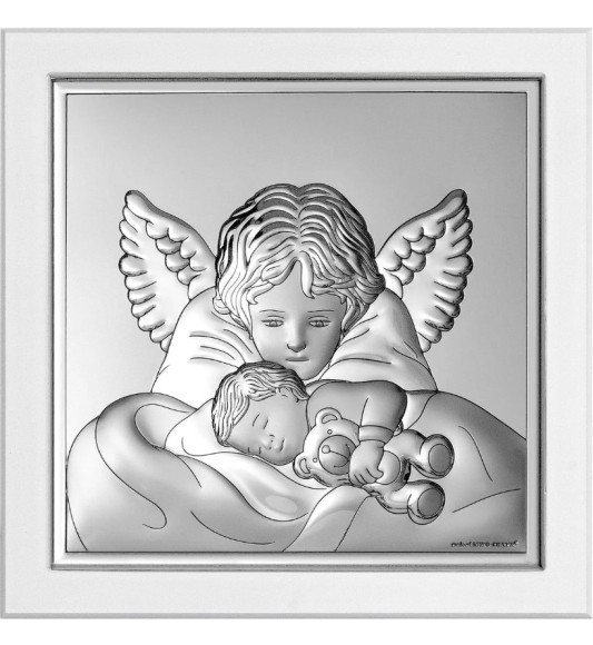 OBRAZEK SREBRNY ANIOŁ NAD DZIECIĄTKIEM 6760/2XFB 18X18