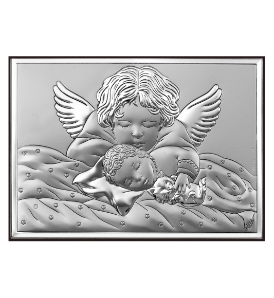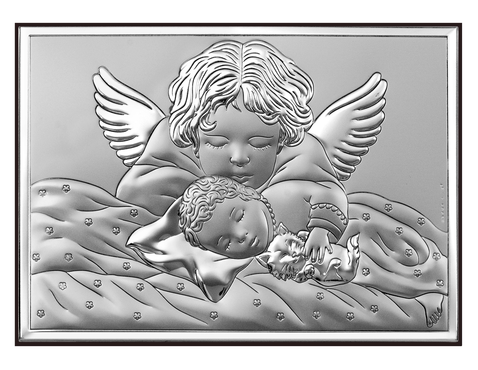 OBRAZEK SREBRNY ANIOŁEK NAD DZIECIĄTKIEM 6623/2 9X6