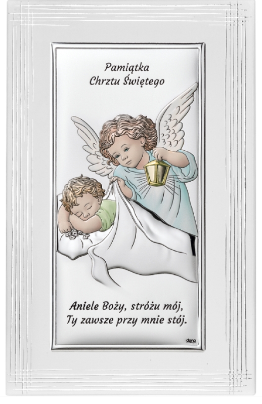 Możliwości wyboru jest wiele. Obrazki są wykonane z wysokiej klasy włoskich materiałów, przy użyciu laminowanego srebra, osadzonego na drewnianym panelu, zabezpieczonego przed rdzą i ciemnieniem za pomocą specjalnego lakieru. To trwała pamiątka, którą można się cieszyć przez długie lata. Obrazki srebrne oryginalnych włoskich marek Beltrami i Valenti są wyposażone w specjalne podpórki oraz gotowe otworki, dzięki czemu można te piękne pamiątki postawić na półce lub powiesić na ścianie. Tył obrazków pokrywa wysokiej jakości drewno, do którego można z łatwością przytwierdzić spersonalizowany grawerunek, który wykonujemy laserowo na eleganckich blaszkach.
