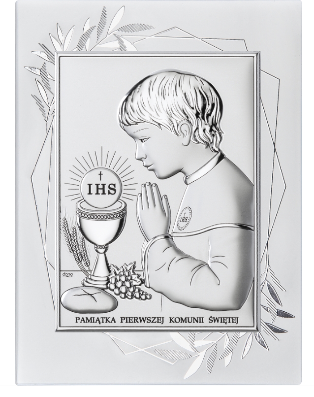 OBRAZEK SREBRNY I KOMUNIA ŚW. DLA CHŁOPCA DS04FO/2O 15X20
