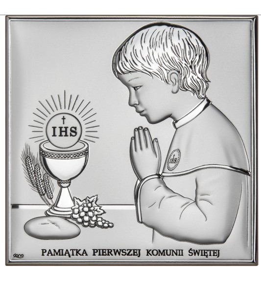 OBRAZEK SREBRNY I KOMUNIA ŚW. DLA CHŁOPCA DS48/3O 16x16