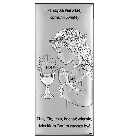 OBRAZEK SREBRNY I KOMUNIA ŚW. DLA DZIEWCZYNKI DS222/3A 8X18