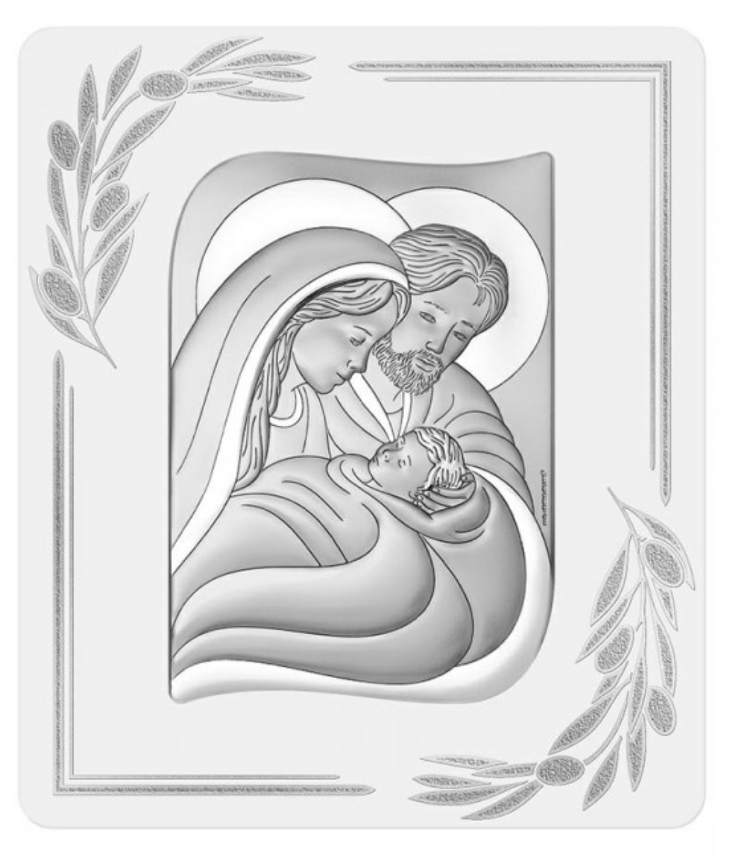 Nasz sklep oferuje szeroki wybór srebrnych pamiątek, nawiązujących do tradycji chrześcijańskiej i związanej z nią obrzędów i sakramentów. Nasz asortyment obejmuje m.in. obrazy, które przedstawiają wizerunek Świętej Rodziny, będącej symbolem rodzinnego ciepła, miłości i wzajemnego szacunku. Srebrny obrazek przedstawiający kochającą rodzinę: Maryję, Józefa i Dzieciątko Jezus to idealny prezent dla nowożeńców, z okazji rozpoczęcia nowej drogi życia, ofiarowany najczęściej przez rodziców bądź chrzestnych.