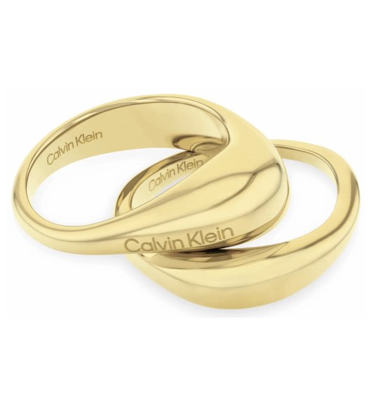 Pierścionek CALVIN KLEIN 35000448C – podwójny pierścionek z hipoalergicznej, pokrytej złotem stali, należący do cenionej, amerykańskiej marki – Calvin Klein. Stylowy model zachwyci niejedną kobietę oryginalną stylistyką i znakomitą jakością wykonania. Modną biżuterię zdobi nazwa marki umieszczona zarówno na górze modelu, jak i od wewnątrz. Obwód stylowego pierścionka wynosi: 54, co odpowiada polskiemu rozmiarowi 14.