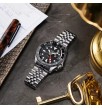 Seiko 5 Sports GMT Black Grape SSK001K1 - to męski automatyczny zegarek, należący do japońskiej, cenionej marki - Seiko. Ten zachowany w sportowym stylu czasomierz posiada okrągłą kopertę, w kolorze czarno- srebrnym, wykonaną z wysokogatunkowej stali szlachetnej, którą osadzono na ogniwkowej bransolecie z tego samego kruszcu. Na czarnej tarczy zegarka w typie nurek umieszczono fluoroscencyjne wskazówki i indeksy godzinowe w postaci kropek i kresek oraz datownik, mieszczący się na godzinie trzeciej. Zegarek o naciągu automatycznym Seiko został wyposażony w mineralne, odporne na uderzenia szkiełko i wysoki poziom wodoodporności - 100m, która chroni model przed zachlapaniem i umożliwia pływanie z rurką. Zegarek w typie nurek posiada obracany bezel, który jest niezbędny podczas nurkowania. Seiko 5 Sports GMT Black Grape SSK001K1 idealnie prezentuje się na męskim nadgarstku w zestawieniu z codzienną stylizacją. Automatyczny model z pewnością przypadnie do gustu niejednemu miłośnikowi oryginalnych japońskich czasomierzy.
