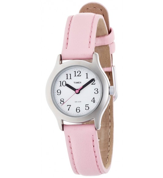 - Zegarek elegancki ale nie biżuteryjny, wyraźne indeksy, różowy pasek ze skóry naturalnej