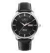 Zeppelin Atlantic Automatik 8466-2 – męski zegarek, należący do cieszącej się uznaniem, niemieckiej marki – Zeppelin. Elegancki czasomierz w typie pilot/ awiator doskonale podkreśli niepowtarzalny styl noszącego go mężczyzny. Ekskluzywny zegarek opiera się na japońskim, automatycznym mechanizmie Miyota 8205, którego rezerwa chodu wynosi do 40 godzin. Okrągłą kopertę niemieckiego zegarka wykonano z wysokogatunkowej stali szlachetnej i osadzono na czarnym pasku, ze skóry naturalnej. Na czarnej tarczy stylowego czasomierza umieszczono fluoroscencyjne wskazówki i indeksy godzinowe w postaci kresek oraz datownik na godzinie trzeciej. Automatyczny Zeppelin ma mineralne, odporne na uderzenia szkiełko i wodoodporność 50m, umożliwiającą pływanie powierzchniowe z modelem. Klasyczny zegarek na pasku doskonale prezentuje się w zestawieniu z garniturem i koszulą, zakładany na specjalne okazje. Model może być także noszony na co dzień, do mniej formalnego stroju.